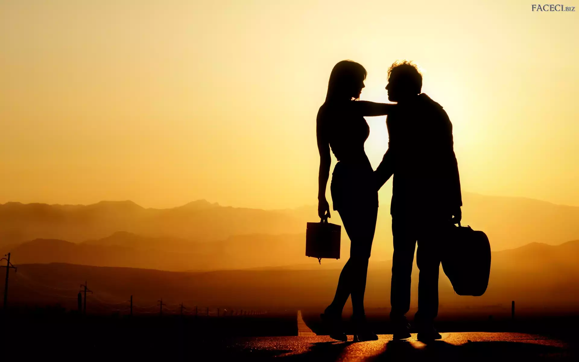 Mężczyzna, Droga, Kobieta, Zachód słońca - faceci.biz